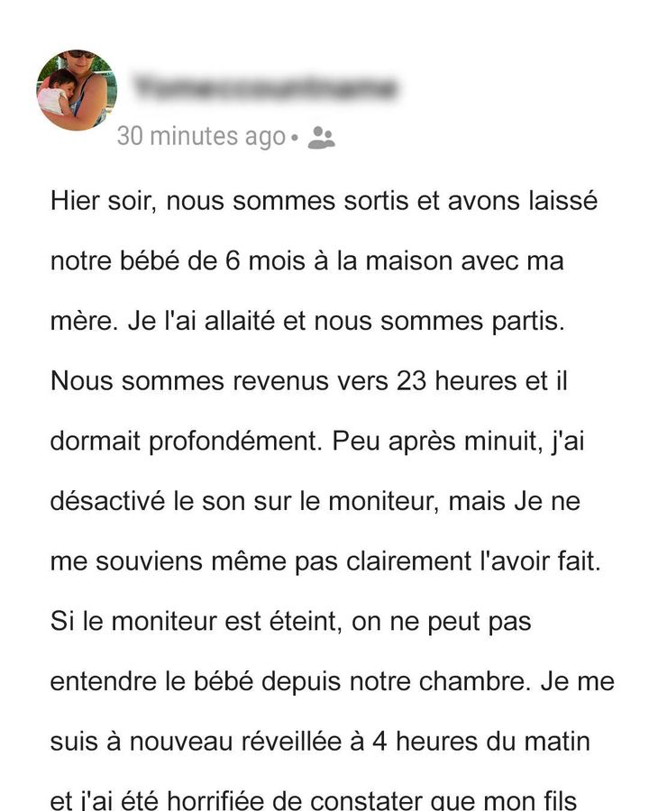 Cette nuit-là, après avoir laissé son bébé de six mois aux soins de sa propre mère, la jeune femme est rentrée chez elle vers 23 heures. Elle a vérifié l’état de son enfant, profondément endormi depuis environ huit heures et demie