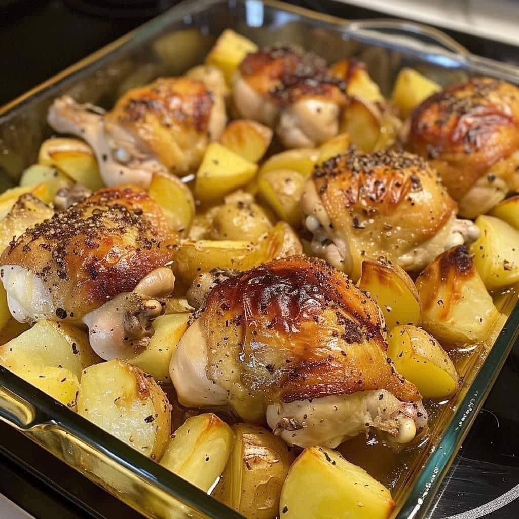 Poulet rôti à l’ail et pommes de terre