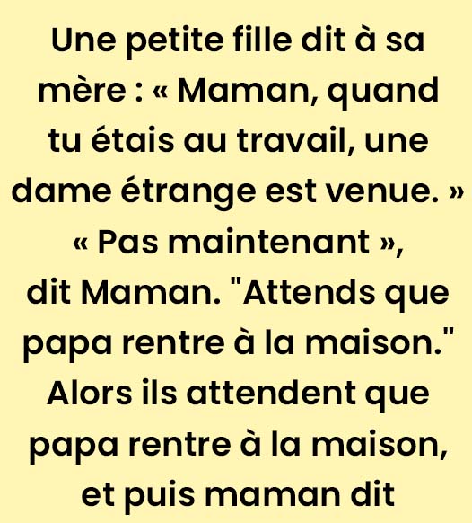 « Maman, quand tu étais au travail, une dame bizarre est venue à la maison. »