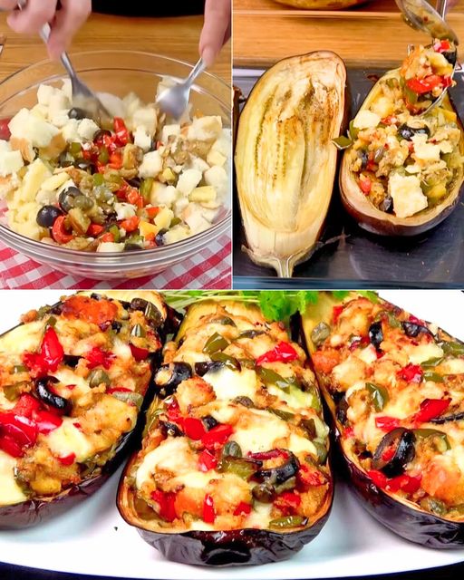 Ingrédients: 2 aubergines Huile d’olive Sel Origan séchépiment 2 poivrons 50 g d’olives noires 1 cuillère à café de câpres non salées 70 g de fromage 3 tranches de pain rassis