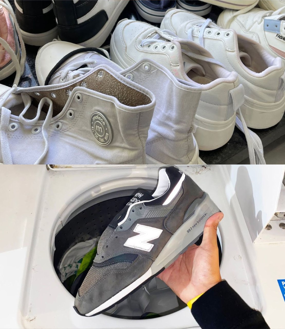Une paire de chaussures destinée au lavage (par exemple, chaussures de sport, chaussures en textile, baskets).