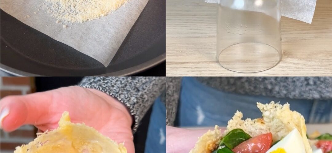 Si vous souhaitez épater vos amis, ces paniers de parmesan remplis de salade sont l’idée parfaite. Ces paniers sont si faciles à préparer : il suffit de laisser le fromage cuire quelques minutes, de le refroidir et de le remplir de salade et d’œufs, de poulet ou de tout autre ingrédient de votre choix. Mangez la garniture, puis mangez le bol ! C’est une excellente façon de servir une salade, faible en glucides et sans gluten ! Ajoutez votre touche personnelle en ajoutant différentes épices et herbes et remplissez-les de ce que vous voulez, en les rendant toutes différentes ou toutes identiques pour un apéritif rapide et savoureux !