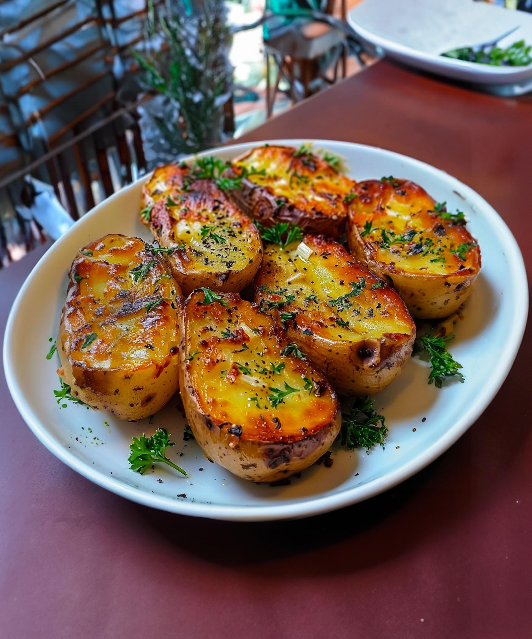 Ce qui rend cette recette si spéciale, c’est l’équilibre parfait entre des textures contrastées et des saveurs complémentaires. Les pommes de terre deviennent croustillantes à l’extérieur tout en restant moelleuses à l’intérieur, grâce à une cuisson lente et uniforme au four. L’ail apporte une profondeur de goût qui s’intensifie au fil de la cuisson, tandis que le beurre fond lentement, enrobant chaque quartier de sa richesse veloutée. Le résultat est un plat aux arômes envoûtants et à la saveur réconfortante, qui invite à la gourmandise.