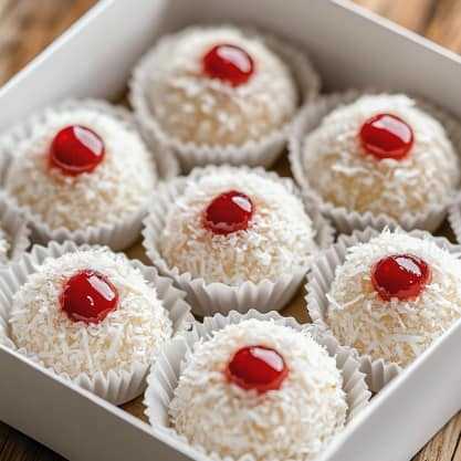 Boules de Neige à la Noix de Coco et Cerises Confites