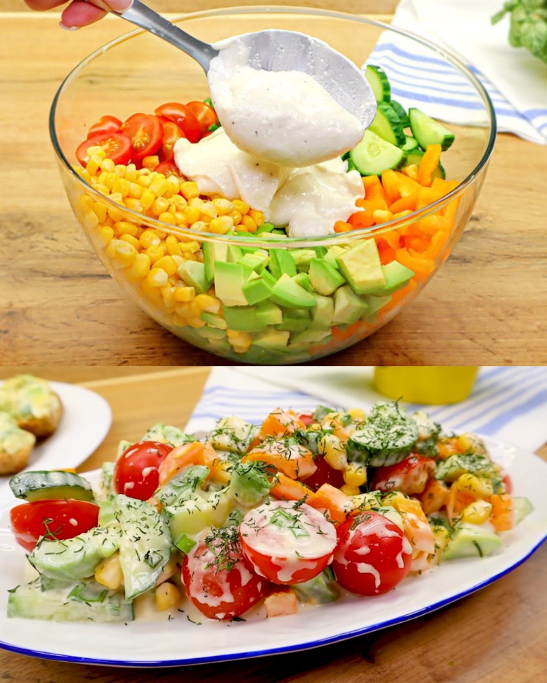 Salade crémeuse de maïs et poivrons, avocat et tomates