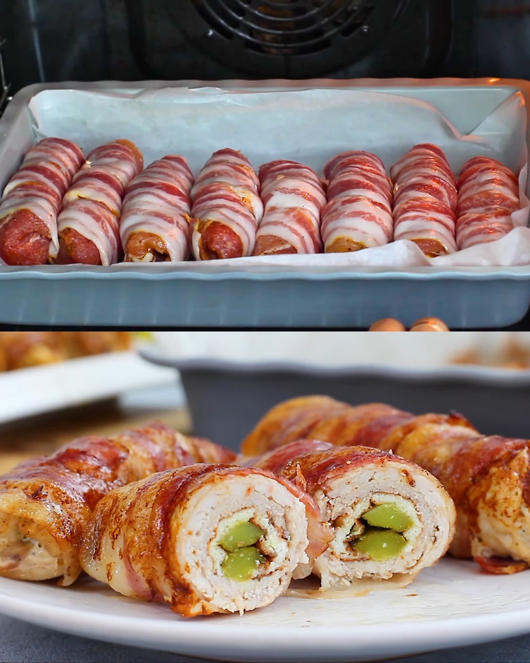 Ces rouleaux de porc enrobés de bacon sont farcis d’une savoureuse omelette aux œufs et de cornichons croquants, créant une combinaison de saveurs alléchantes. Le porc est mariné, enveloppé de bacon et cuit au four jusqu’à ce qu’il soit doré, ce qui rend ce plat juteux, savoureux et plein de textures délicieuses. Cette recette est … Lire plus