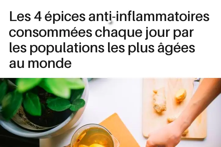 Les 4 Épices Anti-Inflammatoires Consommées Chaque Jour par les Populations les Plus Âgées au Monde Dans les « zones bleues » – ces régions du monde où les gens vivent plus longtemps et en meilleure santé –, l’alimentation joue un rôle clé. Parmi leurs secrets de longévité, on trouve 4 épices puissantes, consommées quotidiennement pour leurs propriétés anti-inflammatoires et protectrices. … Lire plus