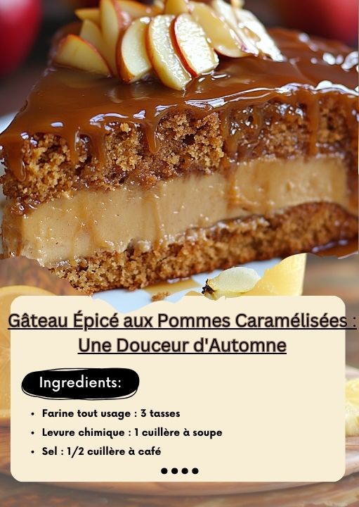 IngrédientsPour le Gâteau :Farine tout usage : 3 tassesLevure chimique : 1 cuillère à soupeSel : 1/2 cuillère à caféCannelle moulue : 2 1/2 cuillères à caféNoix de muscade moulue : 1 cuillère à caféClous de girofle moulus : 1/4 cuillère à caféGingembre moulu : 1/4 cuillère à caféBeurre non salé (ramolli) : 1/2 tasseHuile … Lire plus